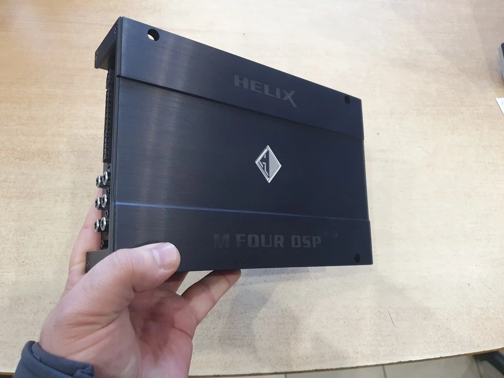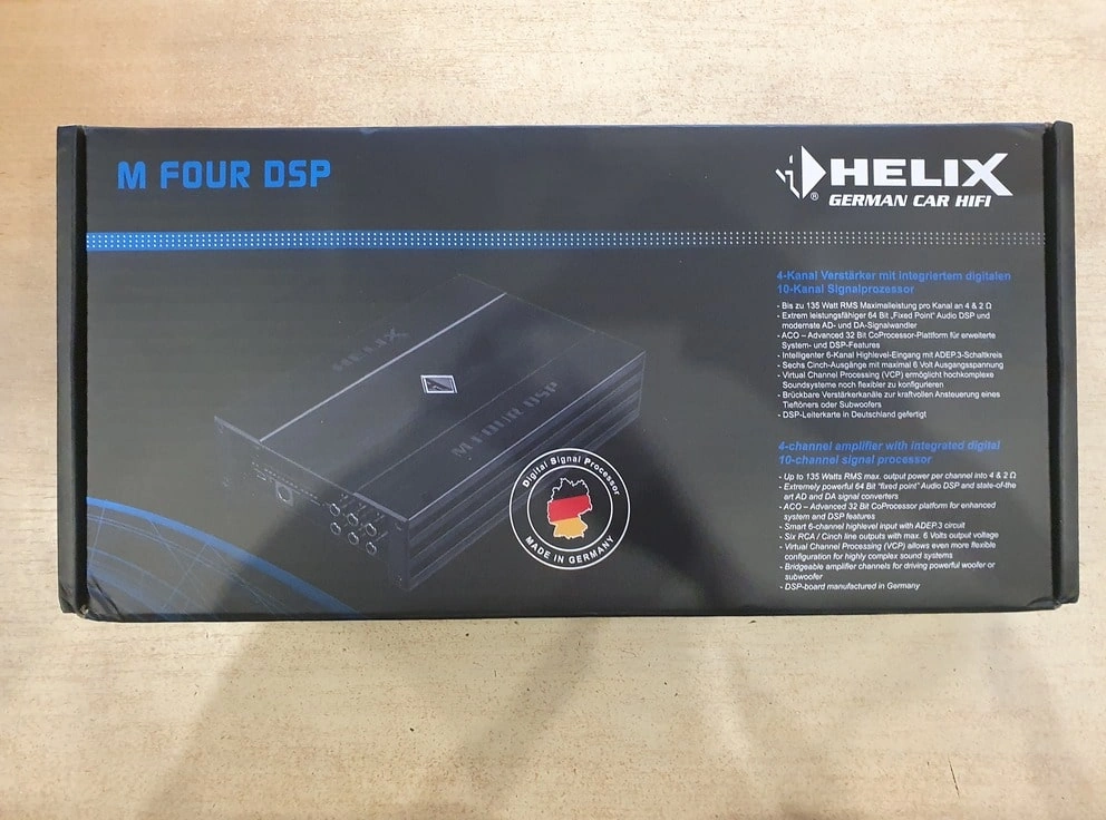 W tym konkretnym przypadku przy układzie głośników 4+2 wybraliśmy wzmacniacz Helix M Four 4-kanałowy z dodatkowym kanałem DSP na aktywny subwoofer.