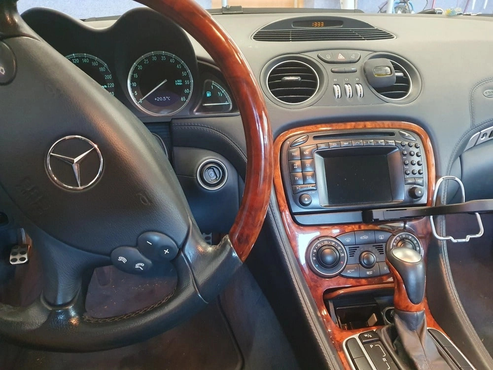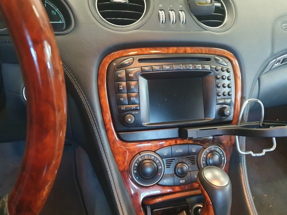 Poniżej przykładowe realizacje montażu stacji typu 2DIN w Mercedes SL 5-generacji R230 w rocznikach 2001 do 2011