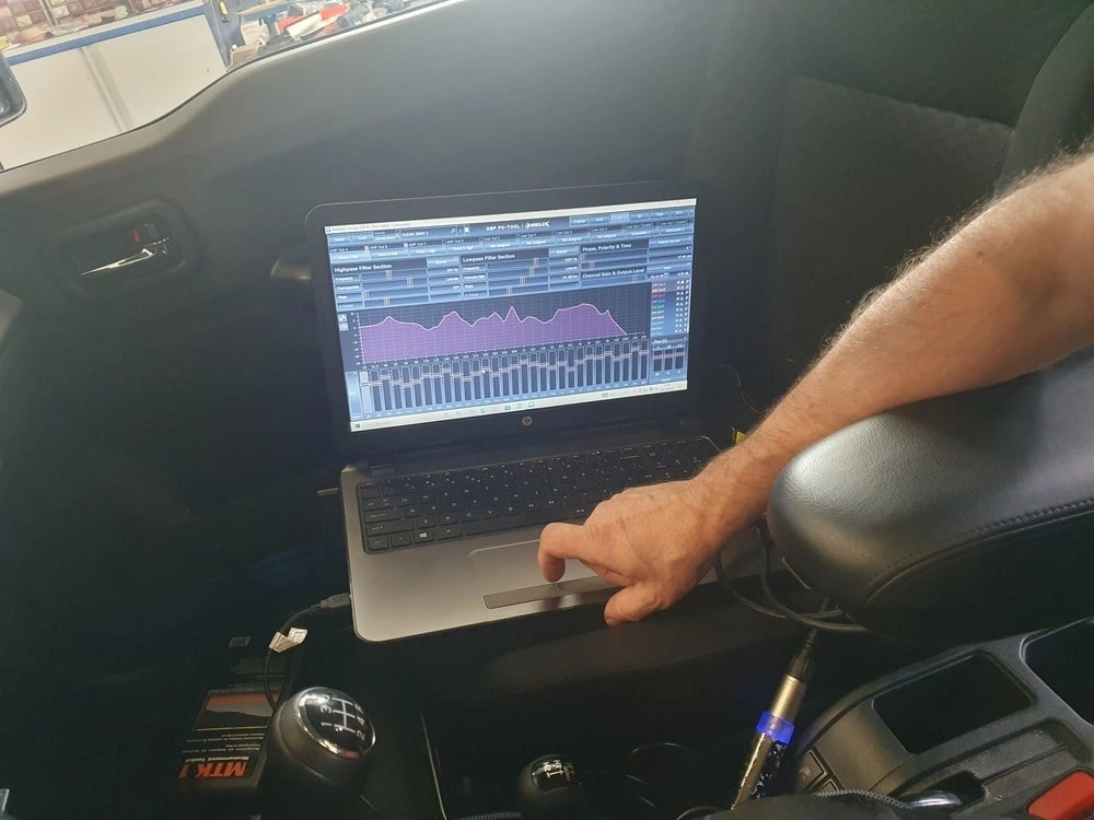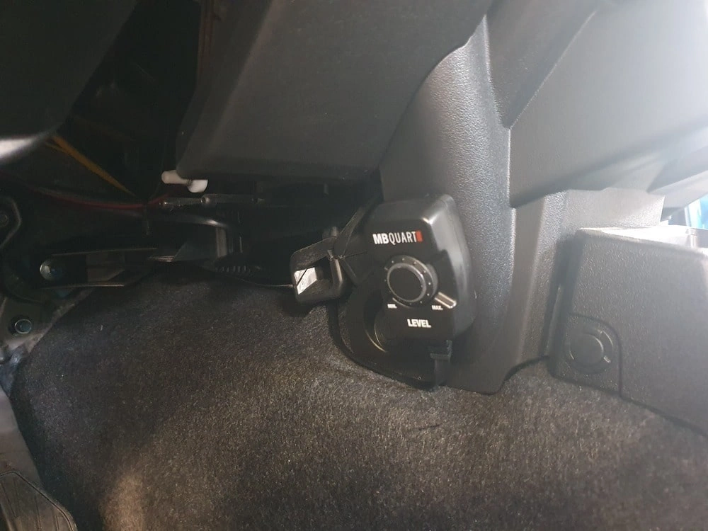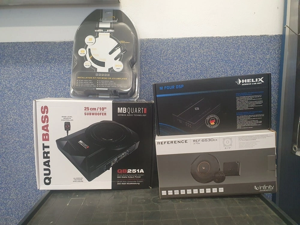 Zastosowaliśmy większe, lepsze głośniki Infinity, dołożyliśmy kompaktowy subwoofer MB Quart i całość napędziliśmy i wystroiliśmy 4-kanałowym wzmacniaczem Helix z wbudowanym procesorem dźwięku.