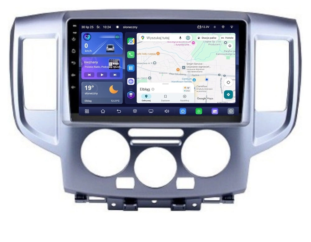 Stacja multiemdialna GMS 7785TQ Navix na systemie Android 14, procesor 8x 2.2GHz, pamięć 4GB RAM + 64GB ROM, dedykowana do samochodów Nissan NV200 2014 - 2018 z manualną klimatyzacja