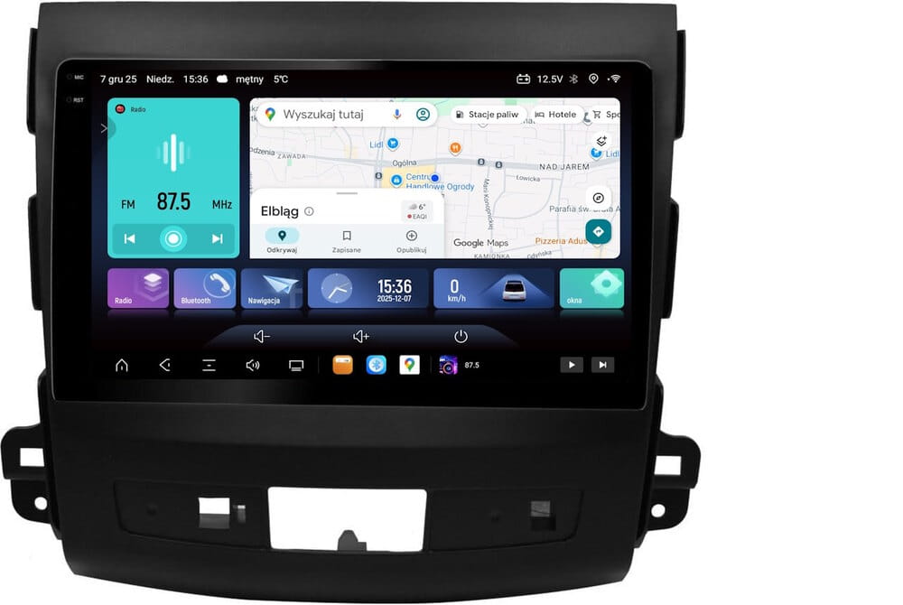 Stacja multiemdialna GMS 9887EV Navix na systemie Android 14, ekran QLED 2k 2000x1200px, procesor 8x 2.7GHz, pamięć 8GB RAM + 256GB ROM, Bluetooth Qualcomm, dedykowana do samochodów Mitsubishi Outlander 2007 - 2013