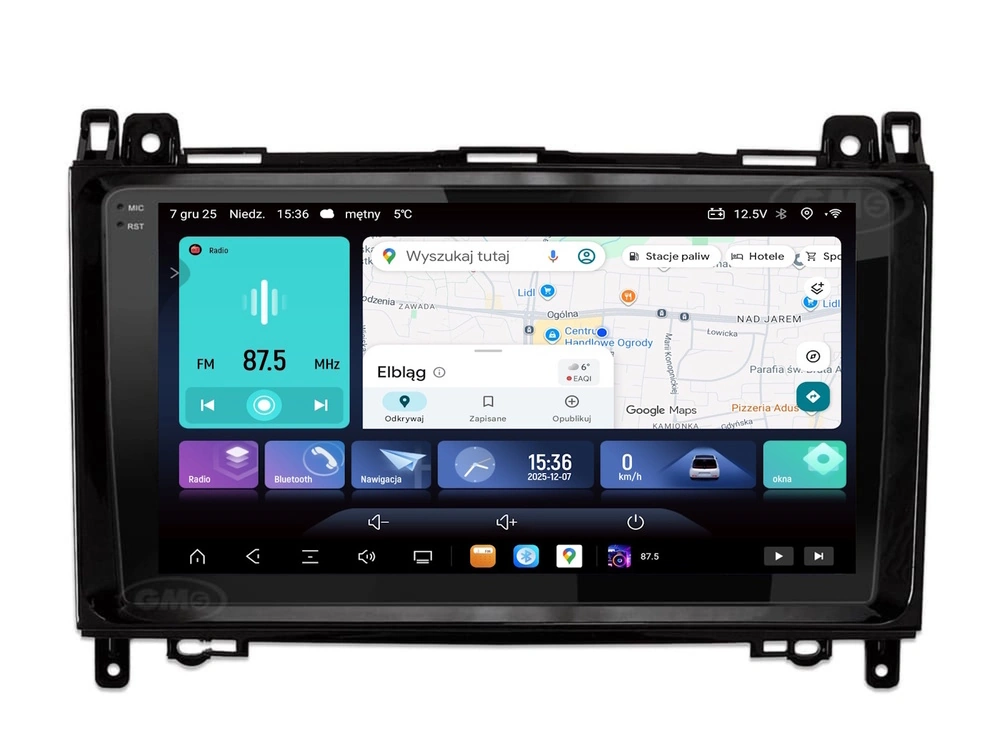 Stacja multiemdialna GMS 9887EV Navix na systemie Android 14, ekran QLED 2k 2000x1200px, procesor 8x 2.7GHz, pamięć 8GB RAM + 256GB ROM, Bluetooth Qualcomm, dedykowana do samochodów Mercedes Sprinter W906 2006 - 2018
